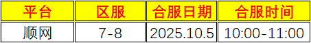 为了给您带来更好的游戏体验,《霸者归来》将于2025年10月5日 10:00-11:00对部分区服进行合服操作,合服期间玩家将不能登录游戏,请各位玩家知晓并相互转告,感谢大家的支持!服务器会根据维护操作完成时间提前或者延迟开启,不便之处敬请体谅!